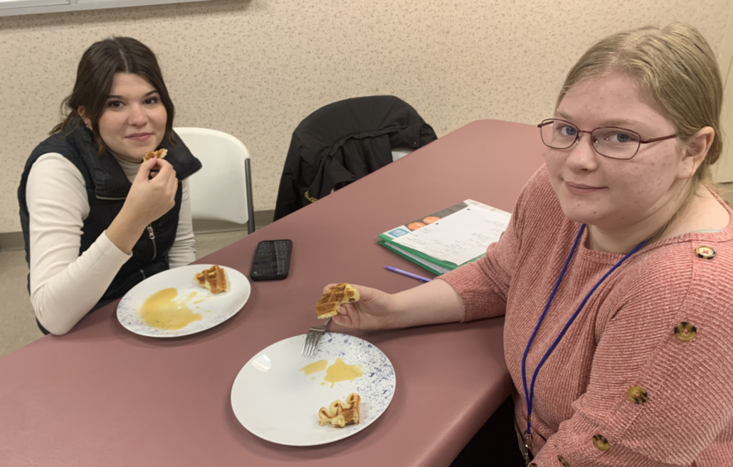 In her second class, she explained how sourdough discards can be used to make other baked goods such as waffles and pancakes. We all intently listened as we discovered that making these items from the discard was even easier than making the bread! It just requires a bit of patience for the discard to leaven the batter. All of us took turns cooking the waffles and pancakes, patiently waiting for the warm, golden brown delights to be ready for us to enjoy.